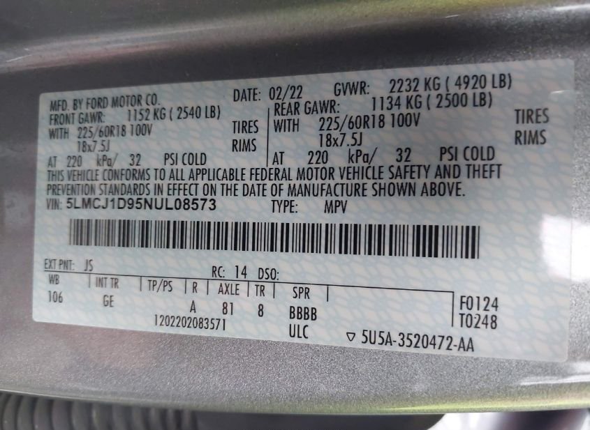 - VIN: 5LMCJ1D95NUL08573