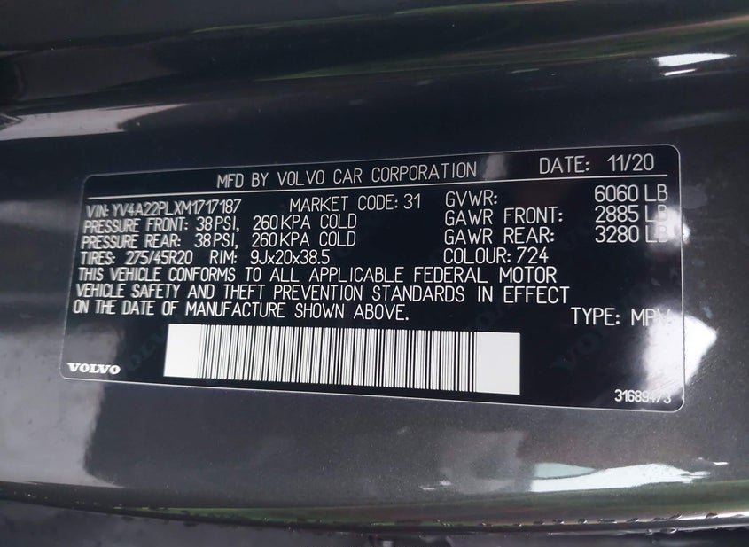 - VIN: YV4A22PLXM1717187