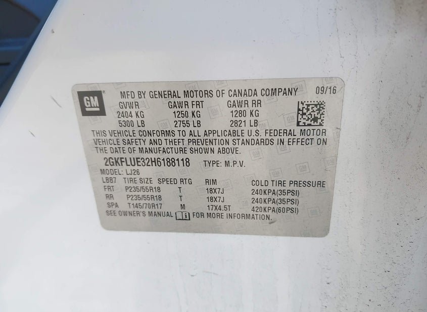 - VIN: 2GKFLUE32H6188118