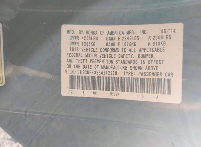 - VIN: 1HGCR2F32EA242209