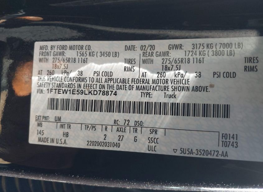 - VIN: 1FTEW1E59LKD78874