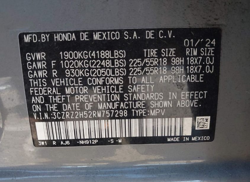 - Название лота: 2024 HONDA HR-V AWD SPORT/AWD SPORT W/O BSI