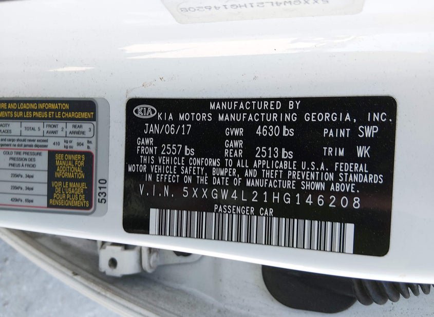 - VIN: 5XXGW4L21HG146208