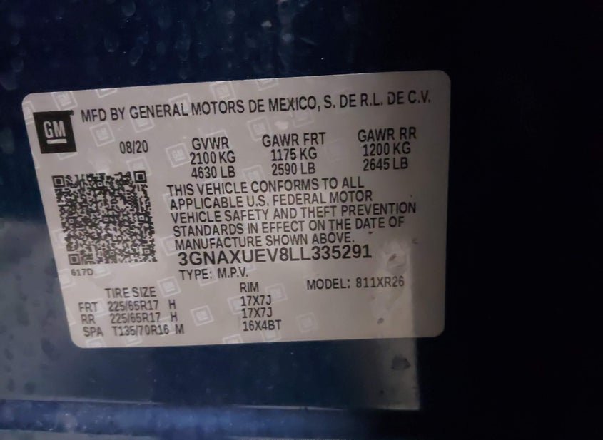 - VIN: 3GNAXUEV8LL335291