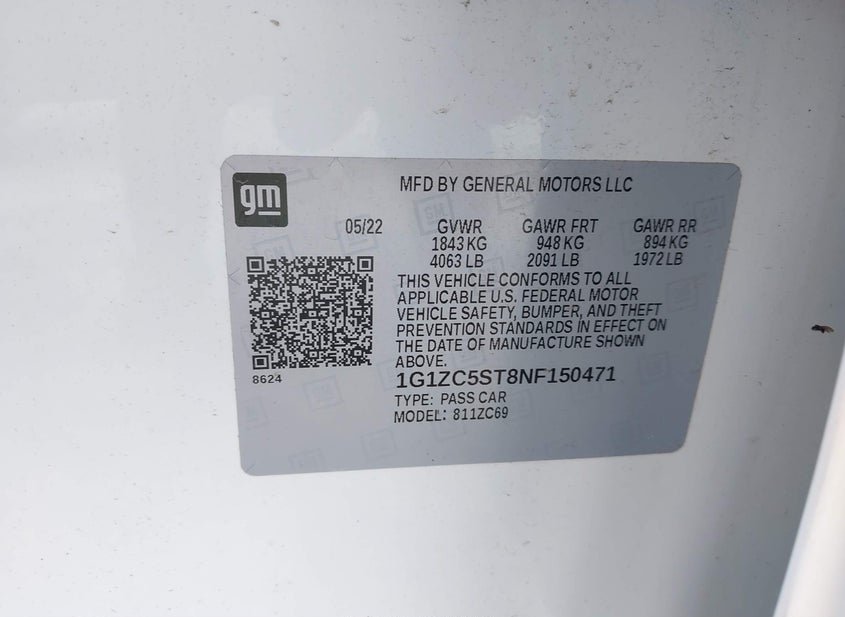 - VIN: 1G1ZC5ST8NF150471