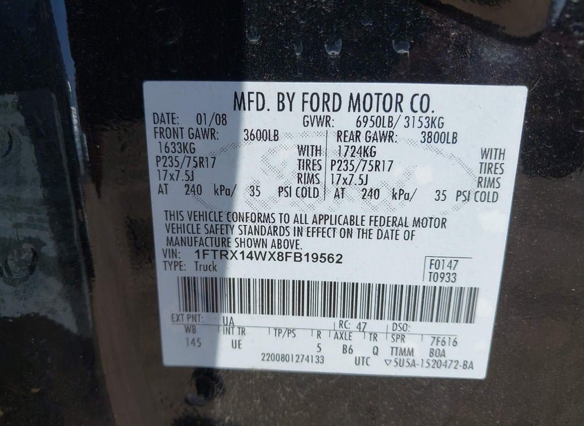 - VIN: 1FTRX14WX8FB19562
