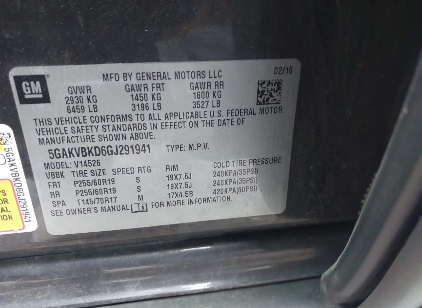 - VIN: 5GAKVBKD6GJ291941