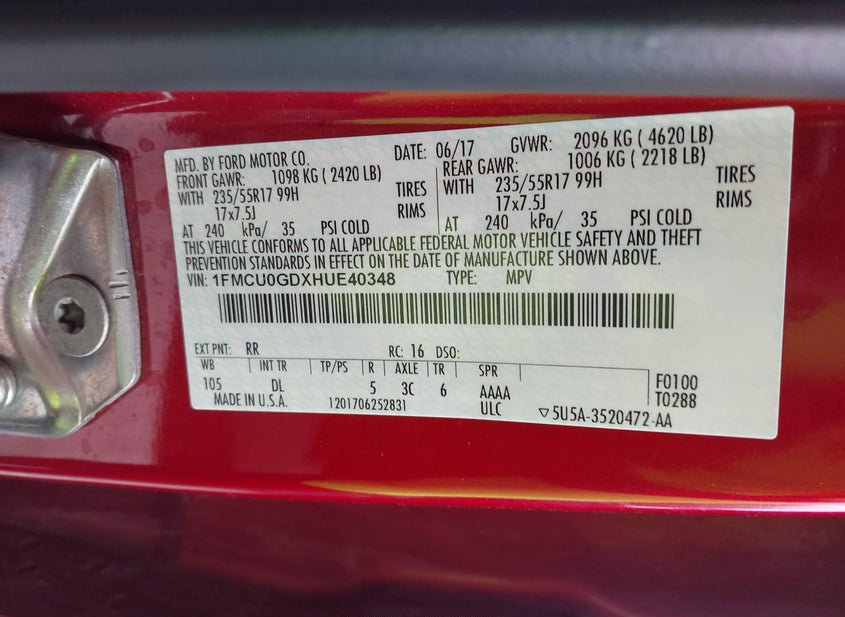 - VIN: 1FMCU0GDXHUE40348