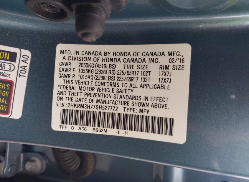 - VIN: 2HKRM3H77GH527772