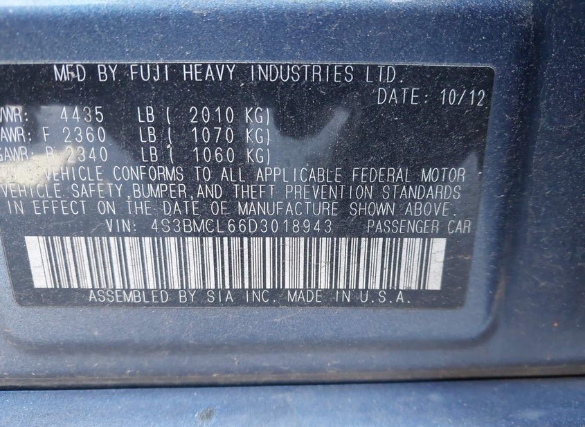 - VIN: 4S3BMCL66D3018943
