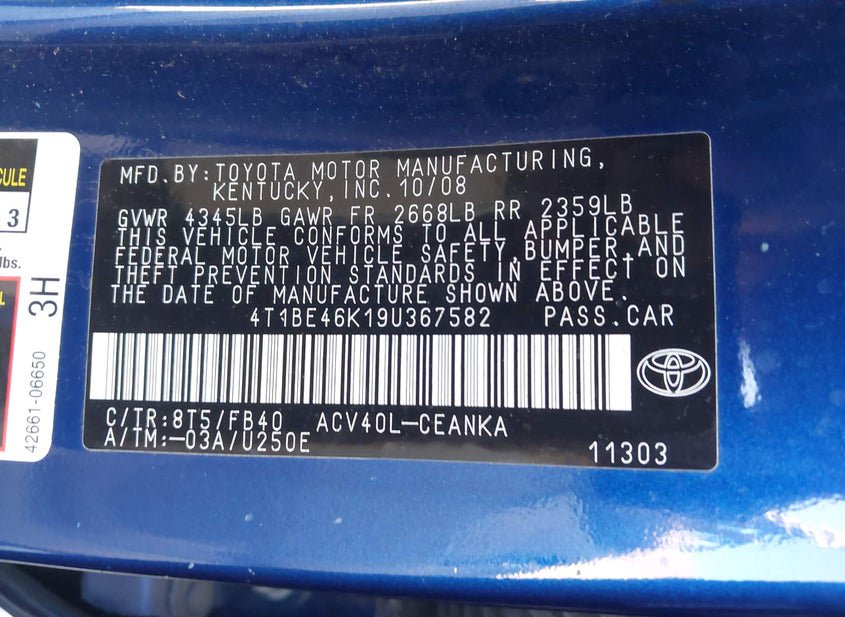- VIN: 4T1BE46K19U367582