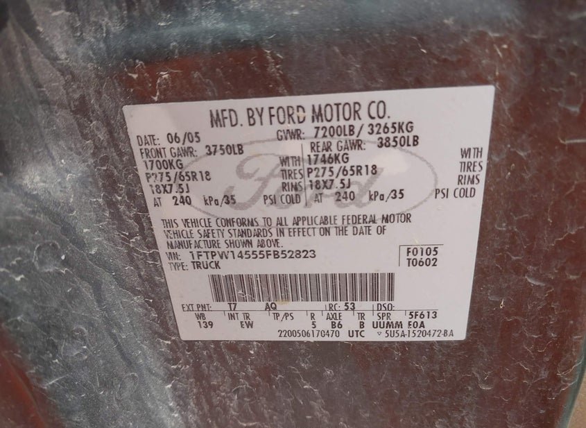 - VIN: 1FTPW14555FB52823
