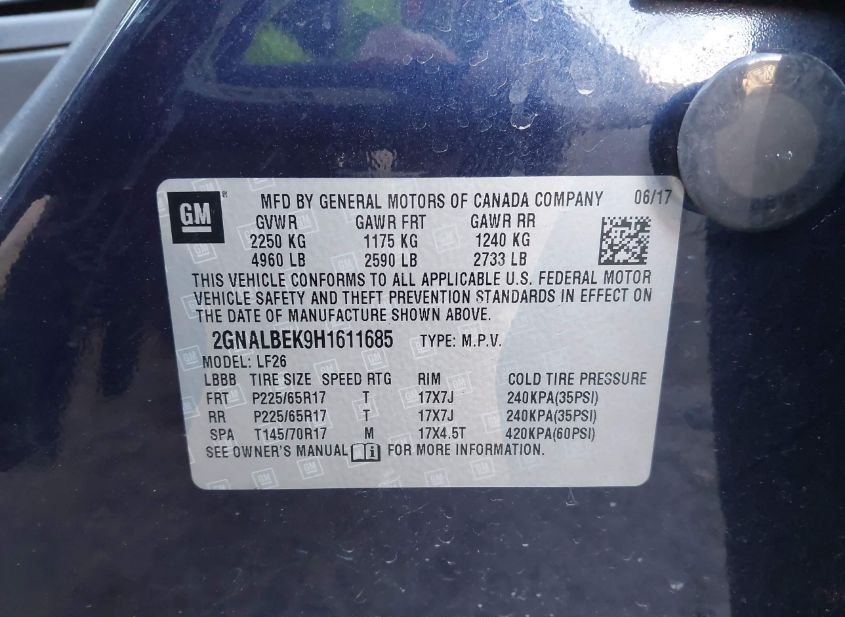 - VIN: 2GNALBEK9H1611685