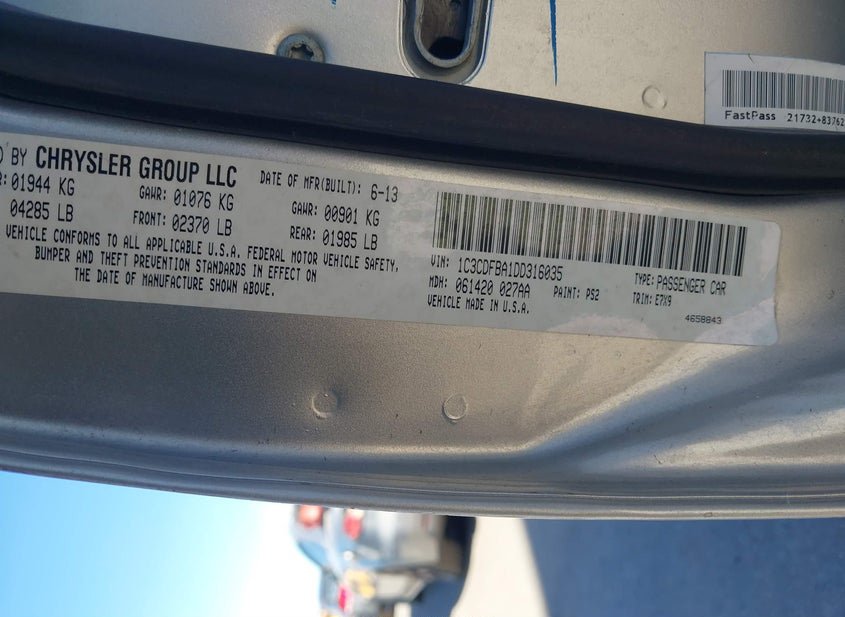 - VIN: 1C3CDFBA1DD316035