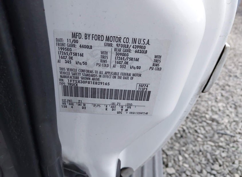 - VIN: 1FTSX30F81EB29165