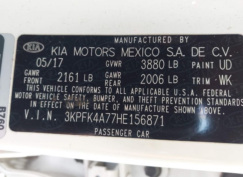 - Название лота: 2017 KIA FORTE LX