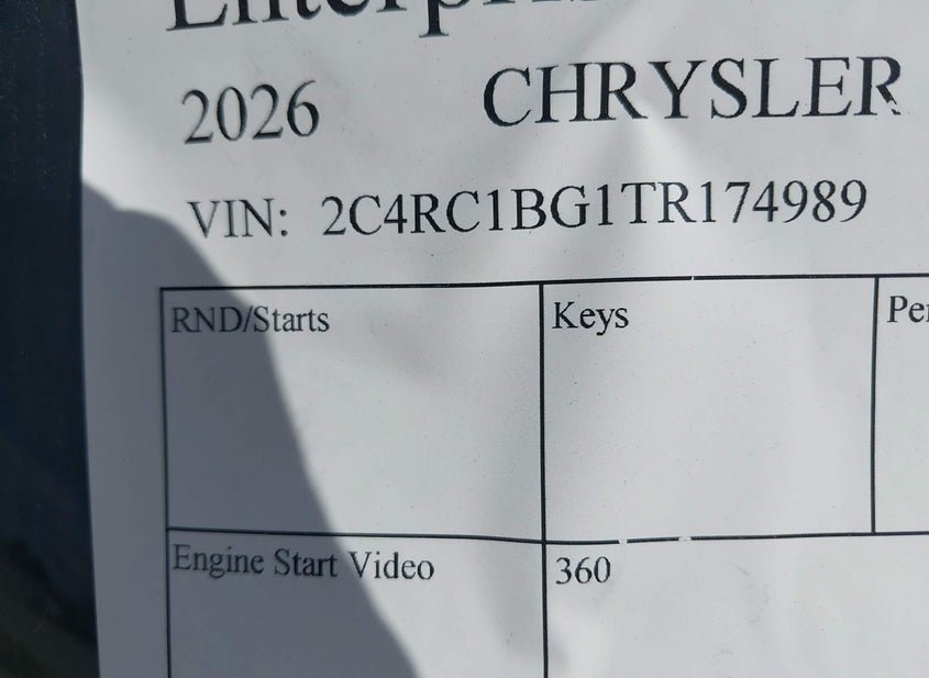 - Название лота: 2026 CHRYSLER PACIFICA SELECT