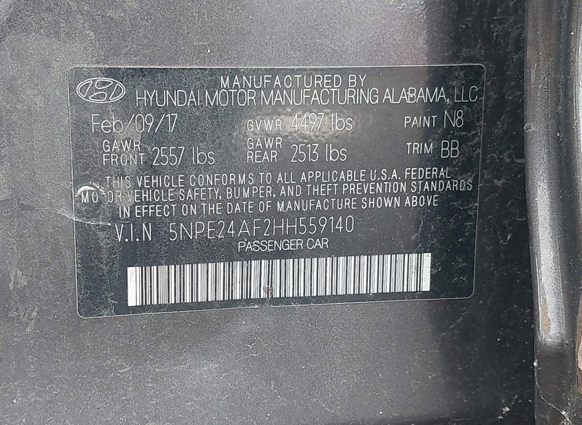 - VIN: 5NPE24AF2HH559140