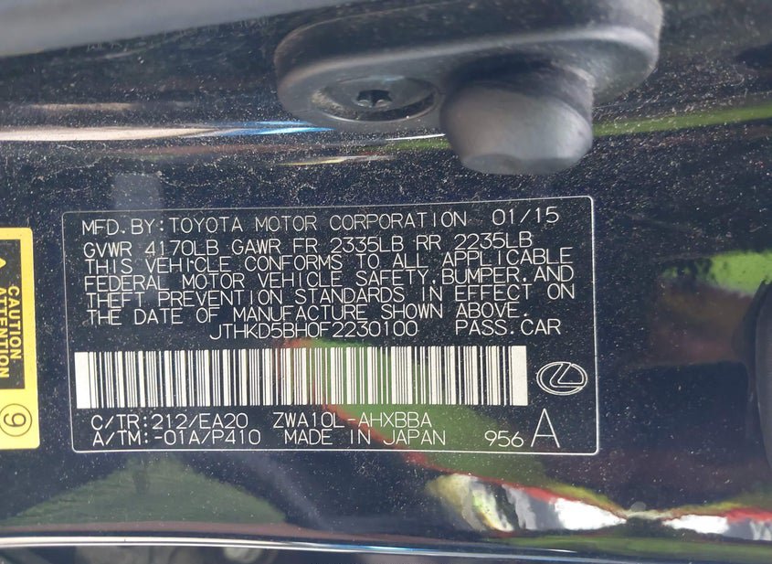 - VIN: JTHKD5BH0F2230100