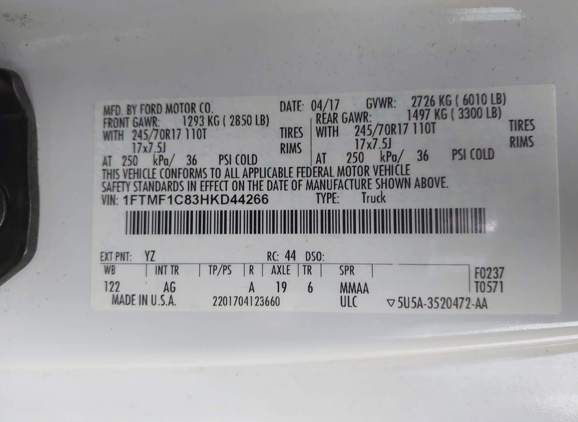 - VIN: 1FTMF1C83HKD44266