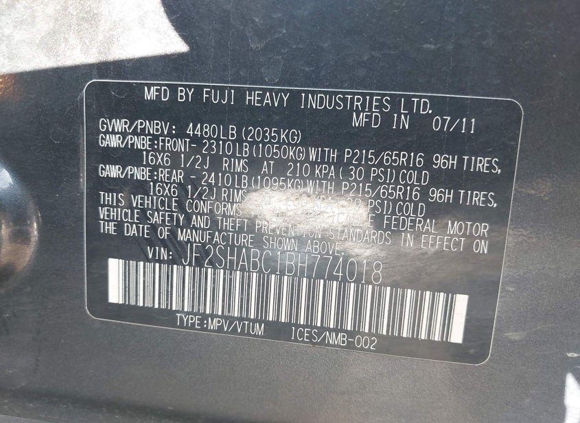 - VIN: JF2SHABC1BH774018