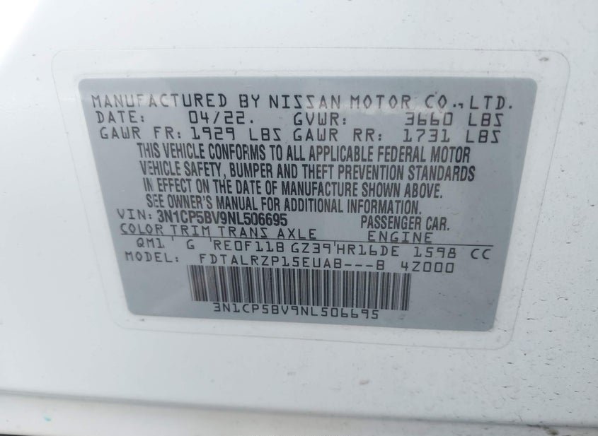 - VIN: 3N1CP5BV9NL506695