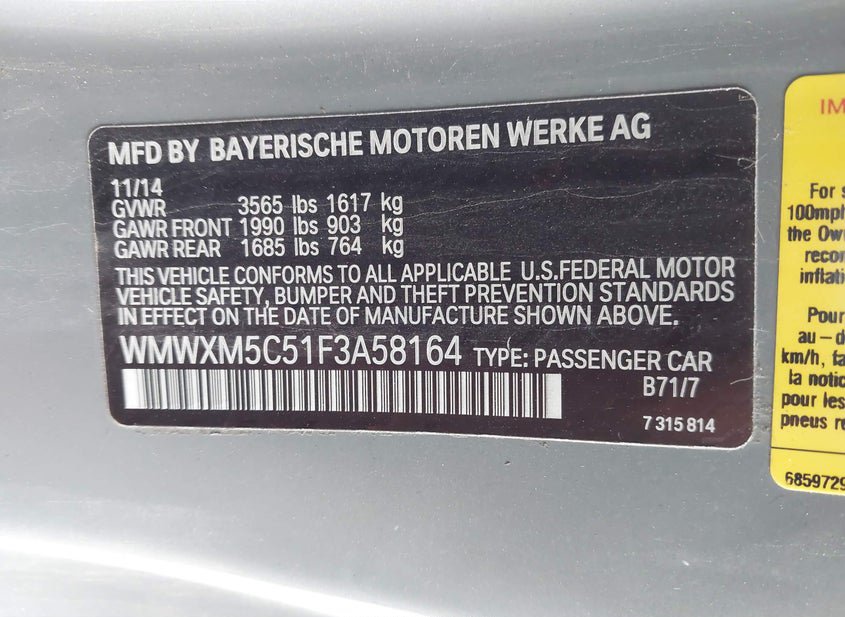 - VIN: WMWXM5C51F3A58164