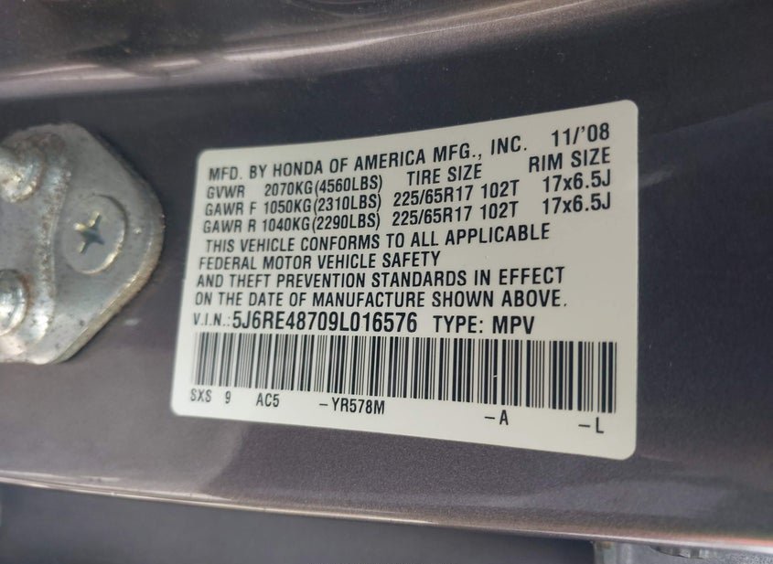 - VIN: 5J6RE48709L016576