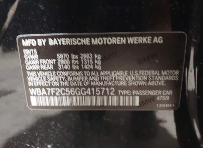 - VIN: WBA7F2C56GG415712