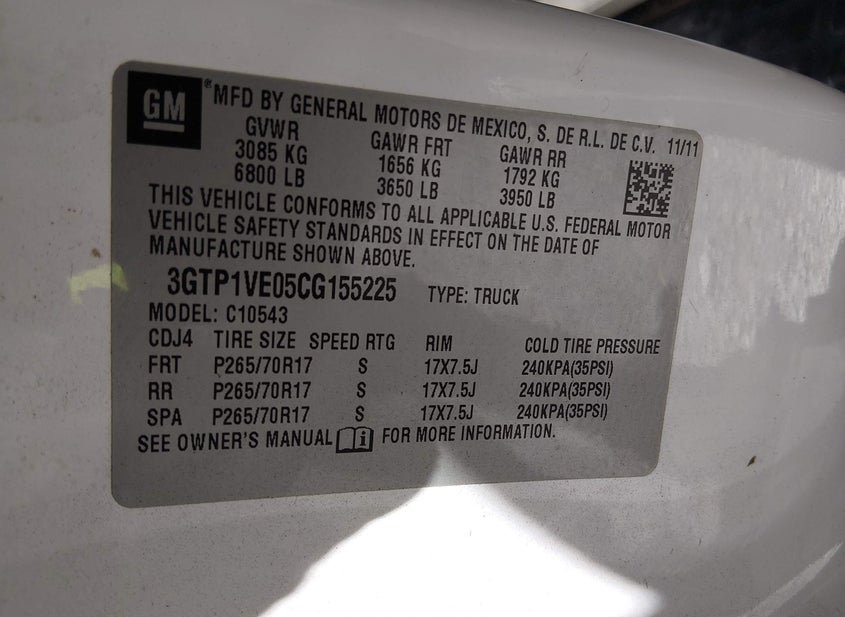 - VIN: 3GTP1VE05CG155225