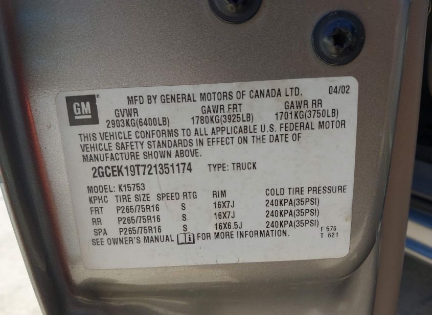- VIN: 2GCEK19T721351174