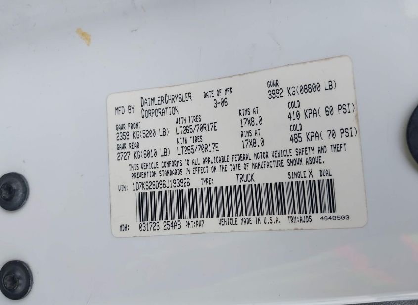 - VIN: 1D7KS28D96J193926
