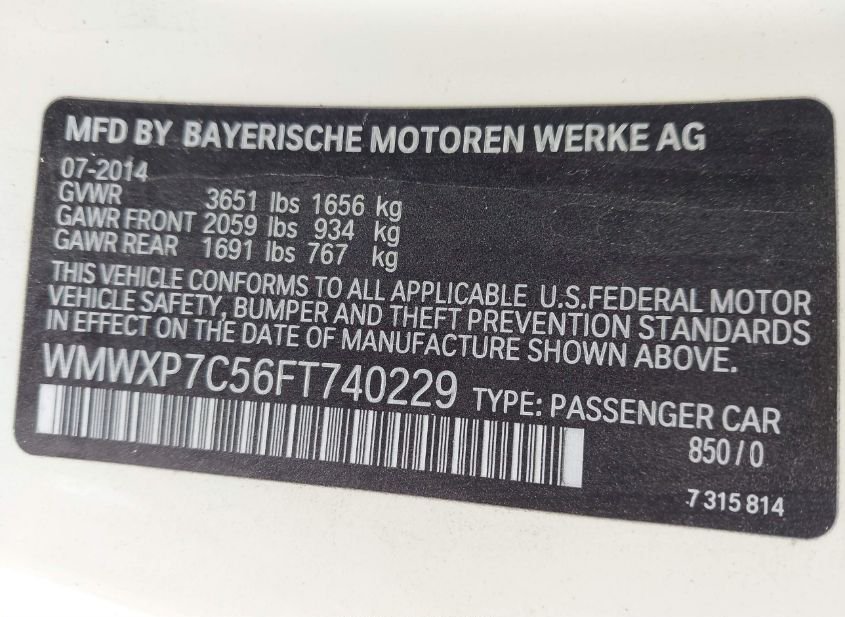 - VIN: WMWXP7C56FT740229