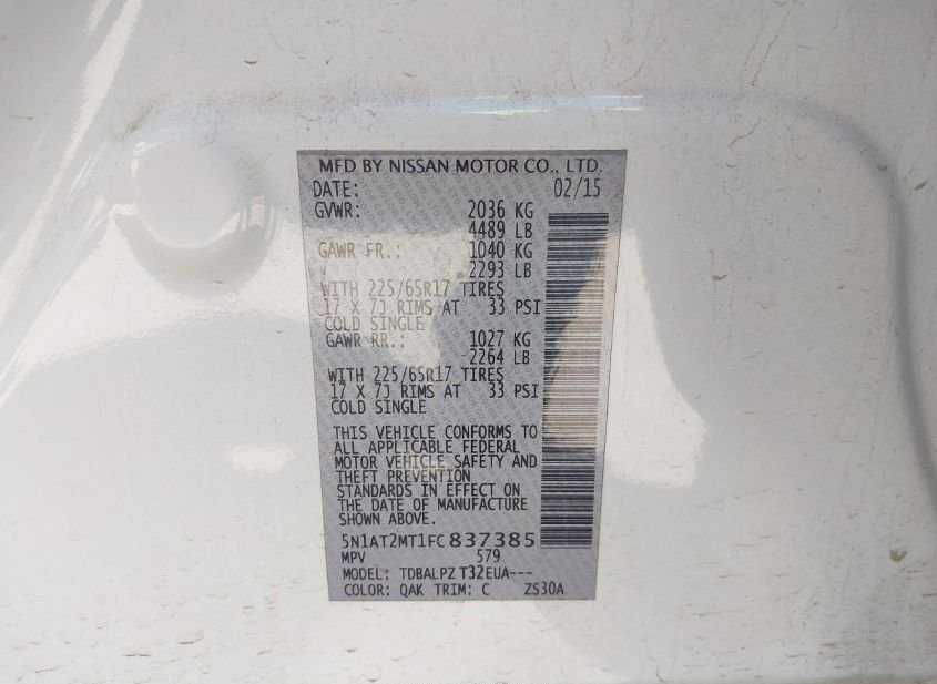 - Название лота: 2015 NISSAN ROGUE S