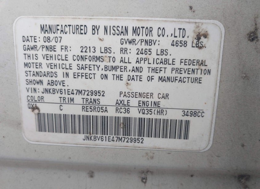 - Название лота: 2007 INFINITI G35 JOURNEY