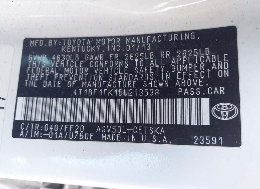 - VIN: 4T1BF1FK1DU213538