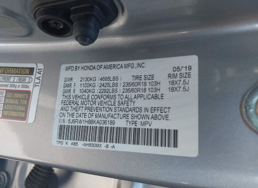 - VIN: 5J6RW1H88KA036189