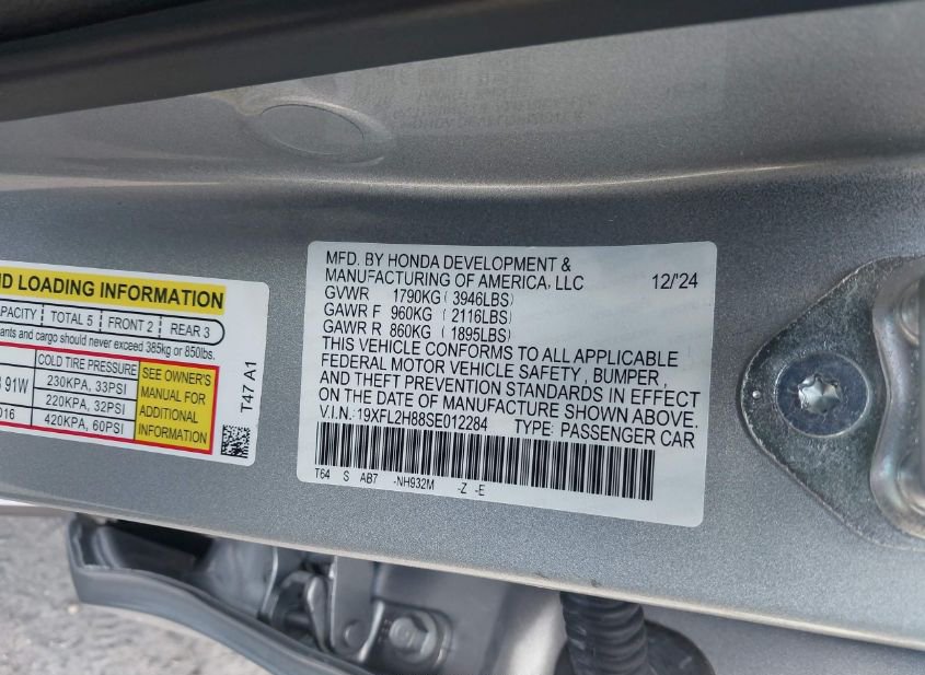 - VIN: 19XFL2H88SE012284