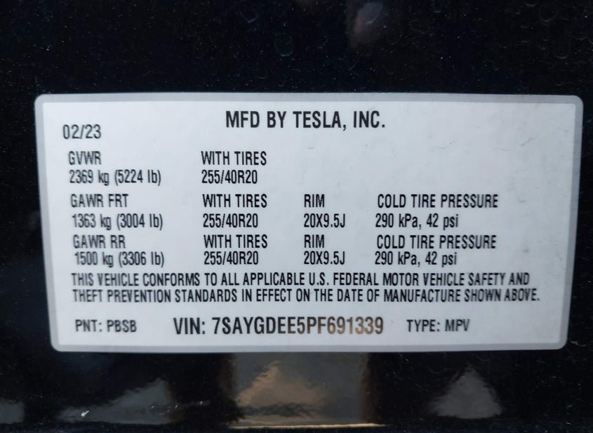 - VIN: 7SAYGDEE5PF691339