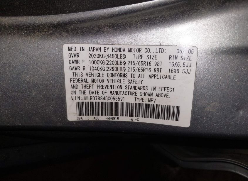 - VIN: JHLRD78845C055591