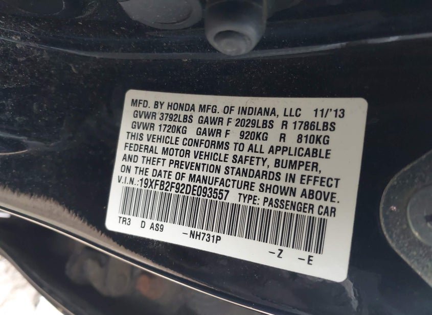 - VIN: 19XFB2F92DE093557