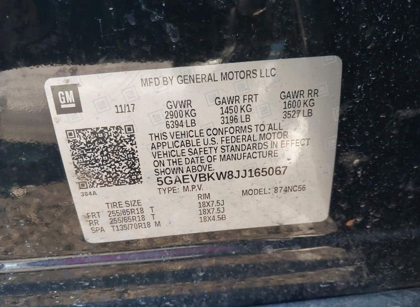 - VIN: 5GAEVBKW8JJ165067