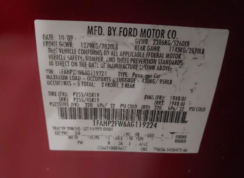 - VIN: 1FAHP2FW6AG119224