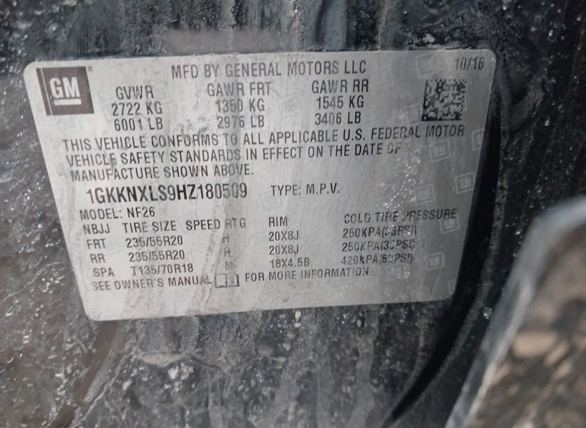 - VIN: 1GKKNXLS9HZ180509