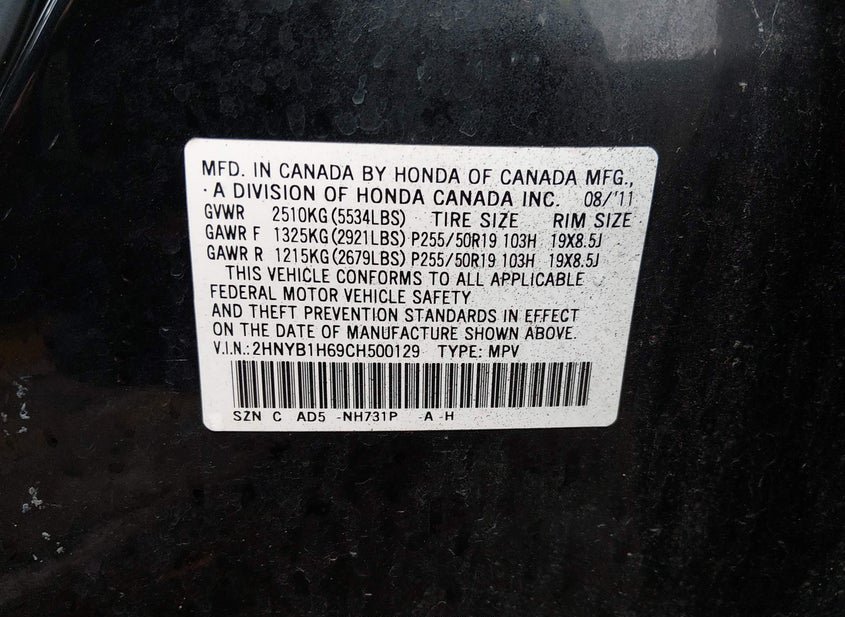 - VIN: 2HNYB1H69CH500129