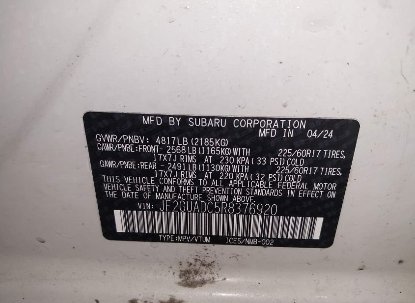 - Название лота: 2024 SUBARU CROSSTREK PREMIUM
