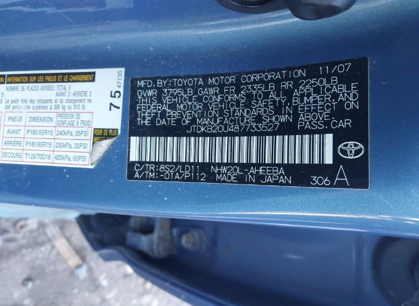 - VIN: JTDKB20U487733527