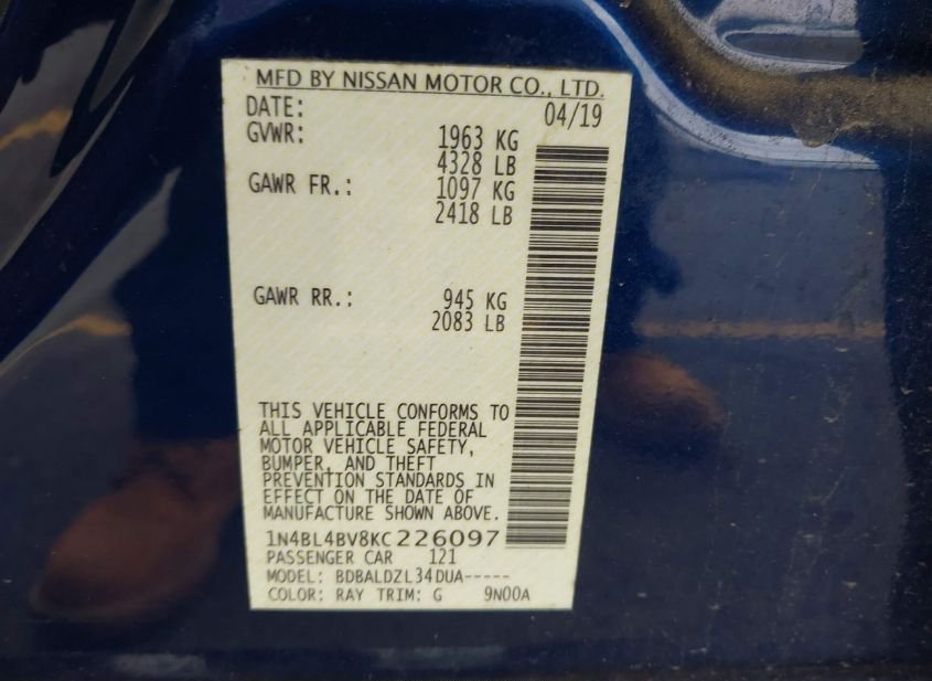 - VIN: 1N4BL4BV8KC226097