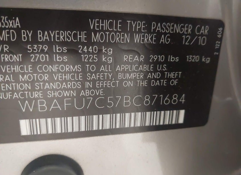 - VIN: WBAFU7C57BC871684