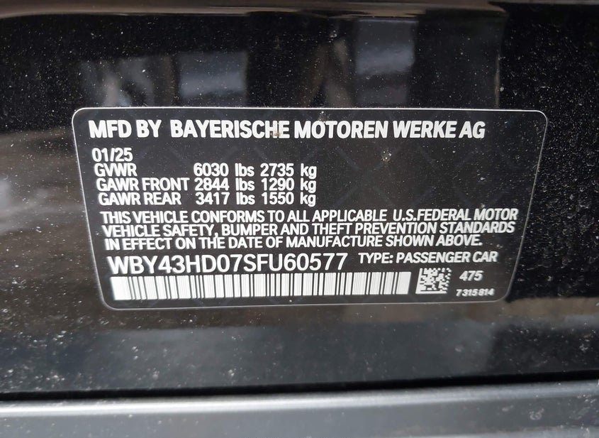 - VIN: WBY43HD07SFU60577